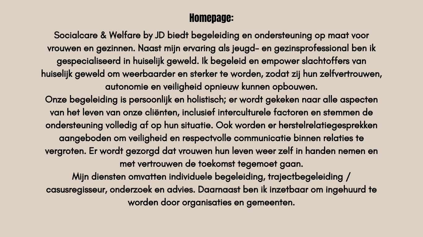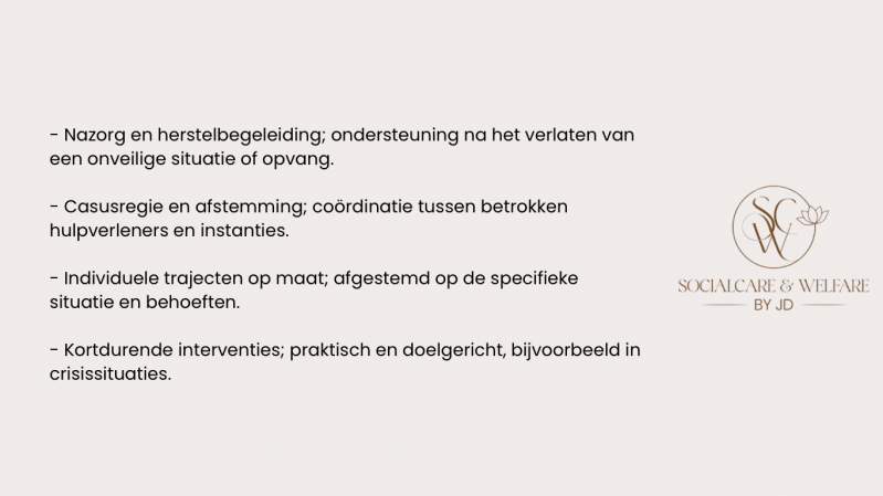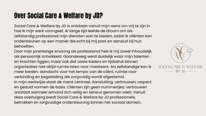 "Dankzij Socialcare & Welfare by JD heb ik de kracht gevonden om mijn leven weer op te pakken. De persoonlijke begeleiding was precies wat ik nodig had."